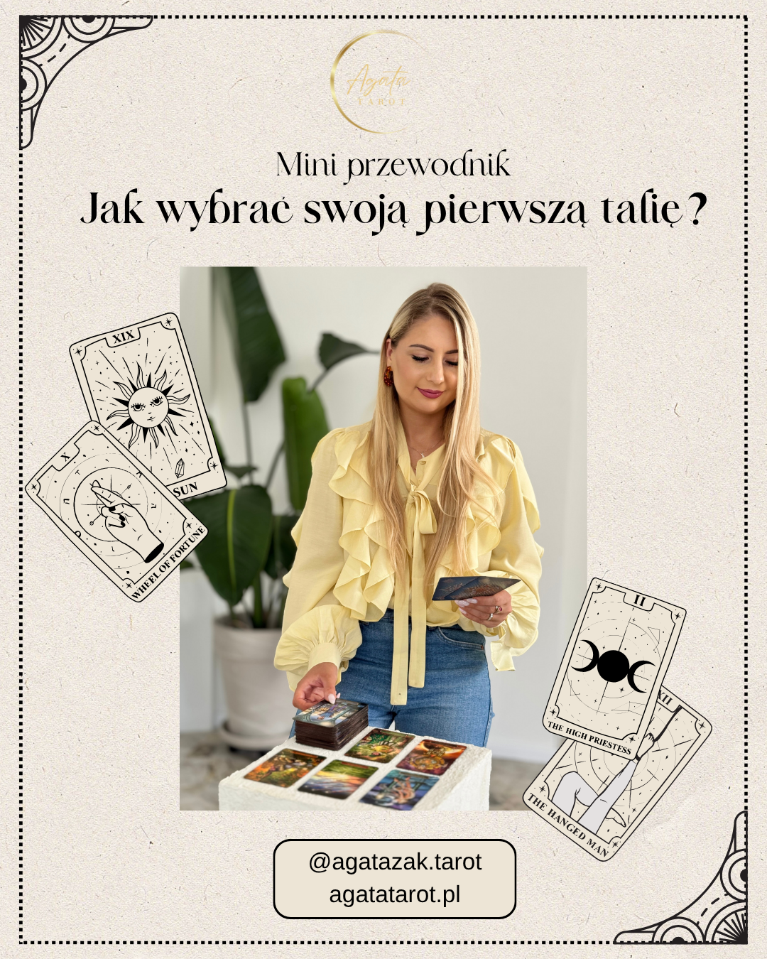 „Jak wybrać swoją pierwszą talię” to mini przewodnik dla początkujących, który pomoże Ci odnaleźć talię idealnie dopasowaną do Twojej energii, stylu i intuicji.